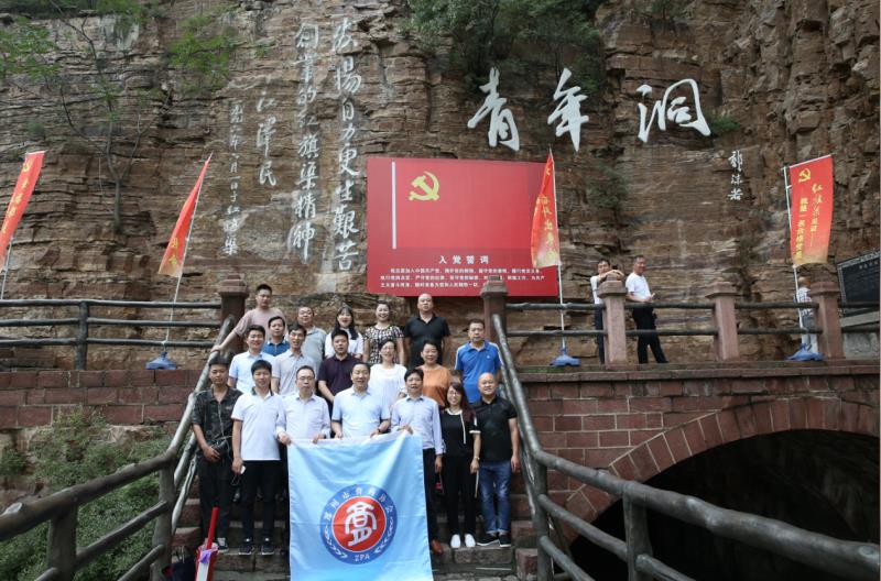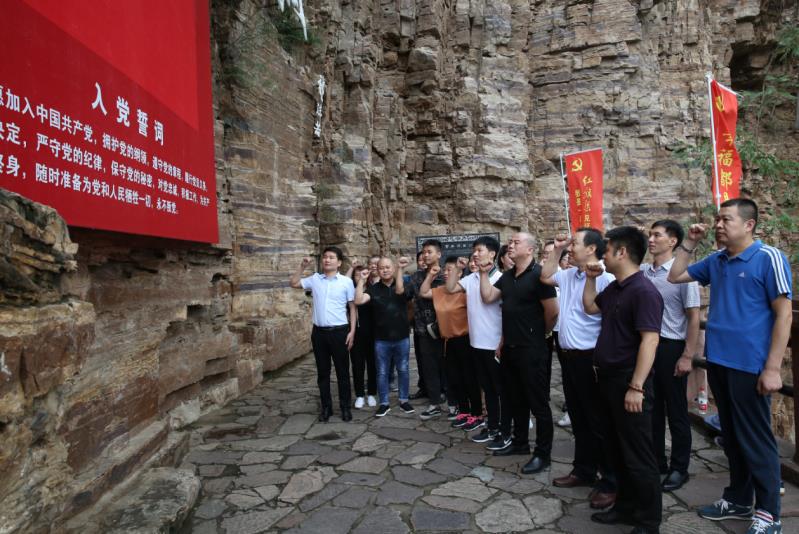 在參觀紅旗渠咽喉工程青年洞前,鄭州市膏藥協(xié)會黨支部全體黨員在鮮紅的黨旗面前莊嚴宣誓,重溫入黨誓詞,堅定了作為一名共產黨員的精神追求和為黨的事業(yè)奮斗終生的信仰。時空流轉,多少人的生命與汗水,凝結成蜿蜒的巨龍穿山而來,鐫刻在崖壁上的是永不服輸?shù)募t旗渠精神。